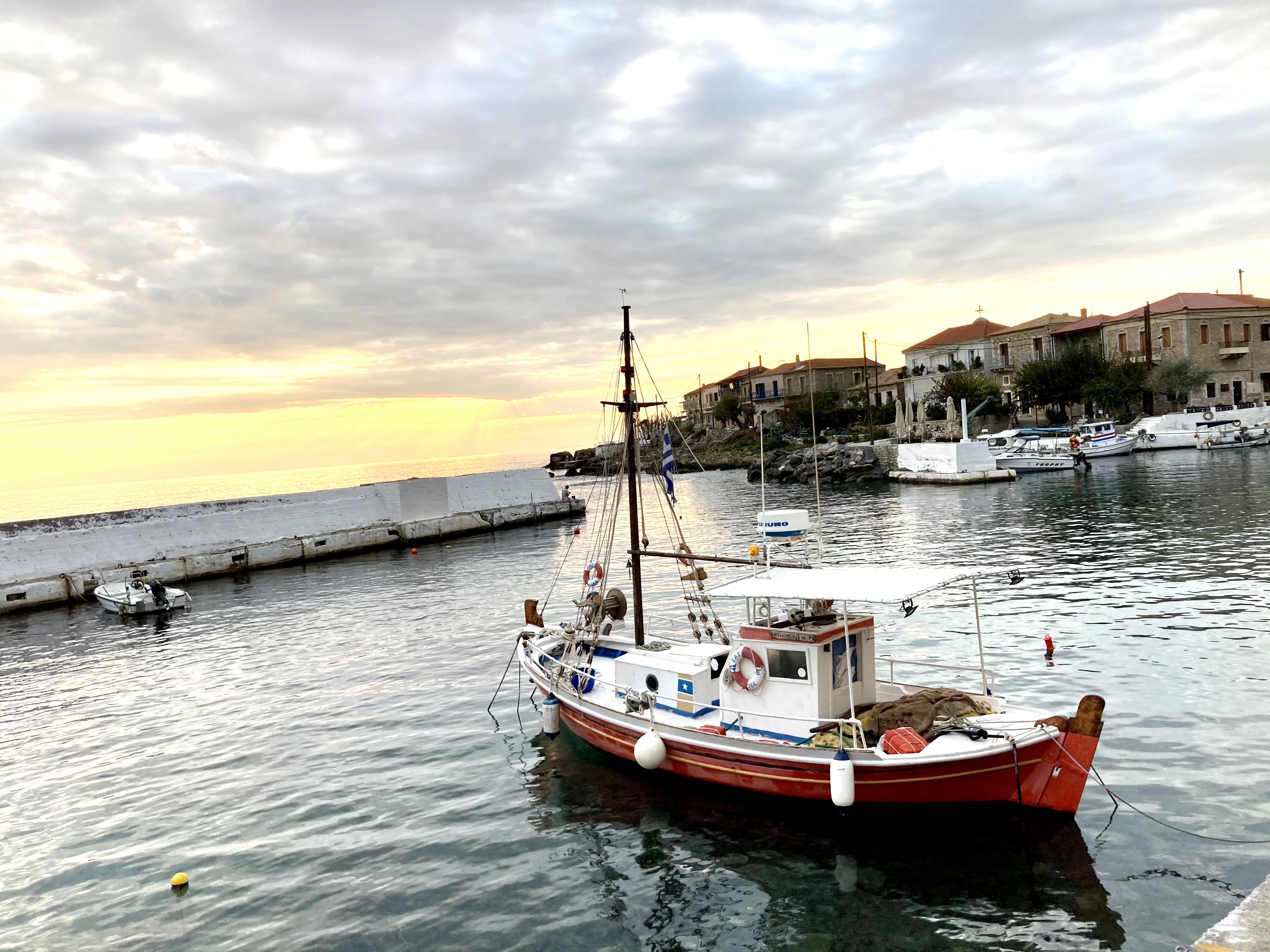 Gytheio a picturesque town located on the other side of the "second tongue". The city center is close to the marina and lighthouse. We wandered around the city and walked towards the lighthouse. On the way to the lighthouse is a green park, which is fun to come and walk in, we bought coffee, chocolate and a variety of pastries and went out for a small picnic near the lighthouse.