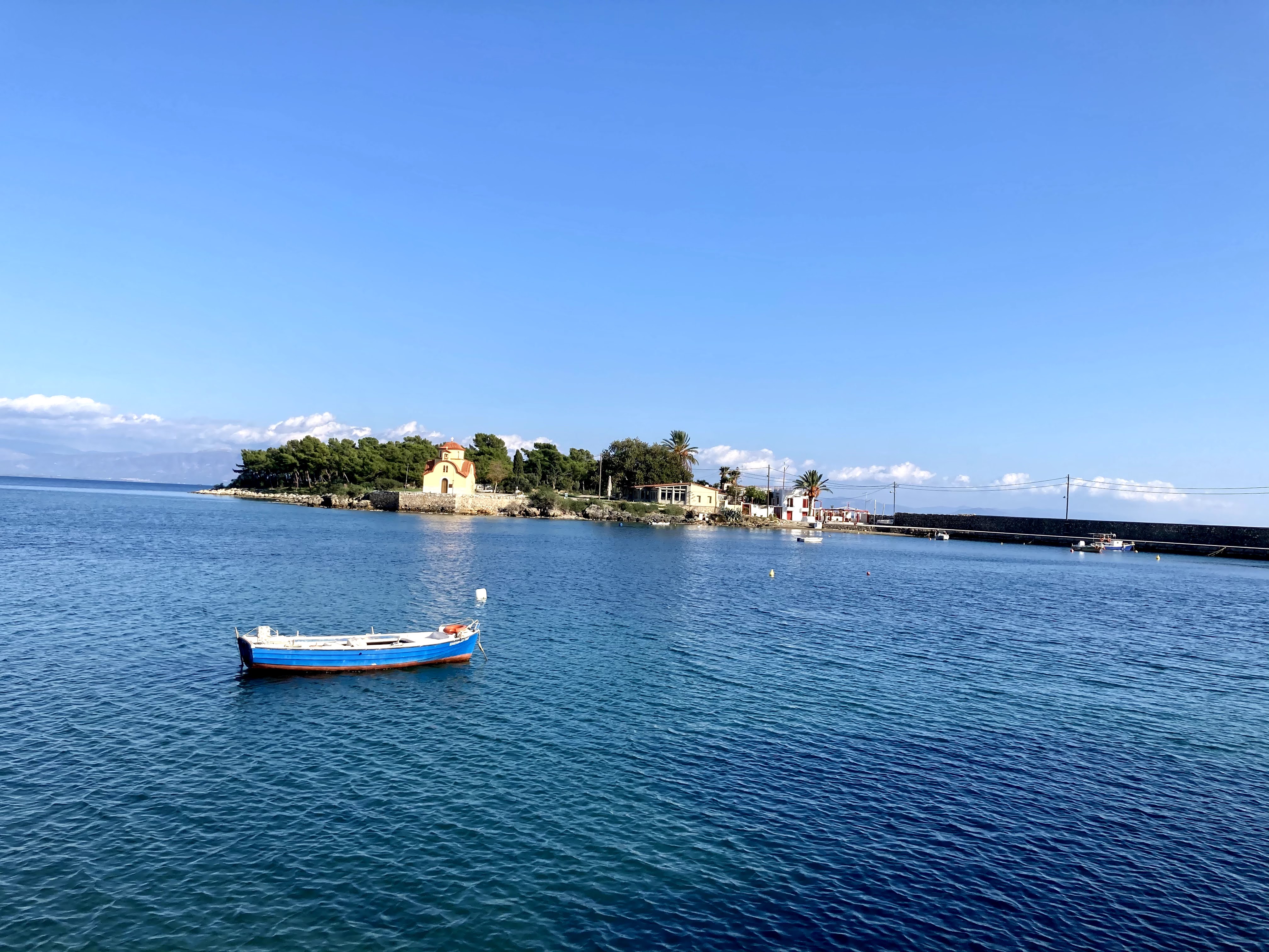 פגשנו חבורה של יוונים מקומיים לשיחת היכרות קצרה. בין הבתים יש שביל המוביל לנקודת תצפית יפה על הים ומשם אפשר לראות את המסלול המוביל לסטופה. לצד התצפית יש מדרגות היורדות לים. בקצה נפרס שטח סלעי יפה ומיוחד ,ממנו ניתן לרדת ישר למים העמוקים , לצערנו היום היה סגרירי ורעיון הקפיצה למים ירד מהפרק.